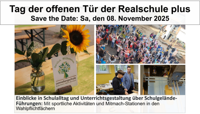Tag der offenen Tür der Realschule plus an der Lennebergschule & Einladung zum Informationsabend 4. Klassen für weiterführende Schulen